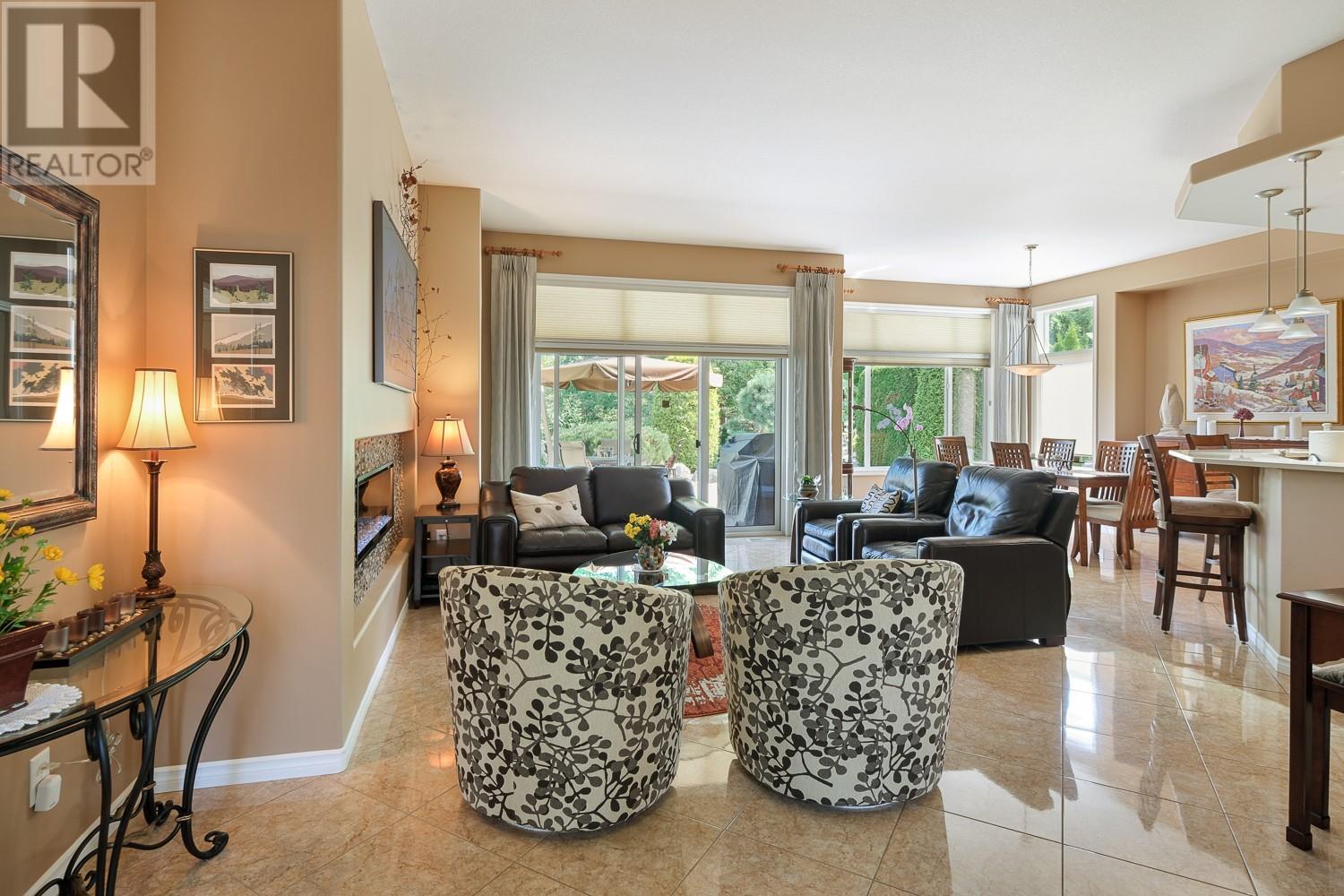 Welcome to Gallaghers Canyon. This well groomed community is a unique collection of homes set in and around the green fairways of both the highly regarded Canyon championship course & The “Pinnacle” executive golf course. This IMMACULATE 2 Bedroom + Den Rancher offers spacious single level living. The open concept design offers seamless entertaining from the well appointed kitchen to the main living area with elegant linear gas fireplace. Primary suite with walk in closet and 4 piece ensuite bathroom. Soak up the morning sun on the lush and tranquil patio backing on to a large strata park with spectacular views. The Community offers a fantastic Amenity Center featuring an indoor saltwater pool, swirl pool, fitness facility, tennis courts, meeting rooms, woodwork shop, pottery, & art’s and craft studio. The Ultimate in resort style living! (id:17834)